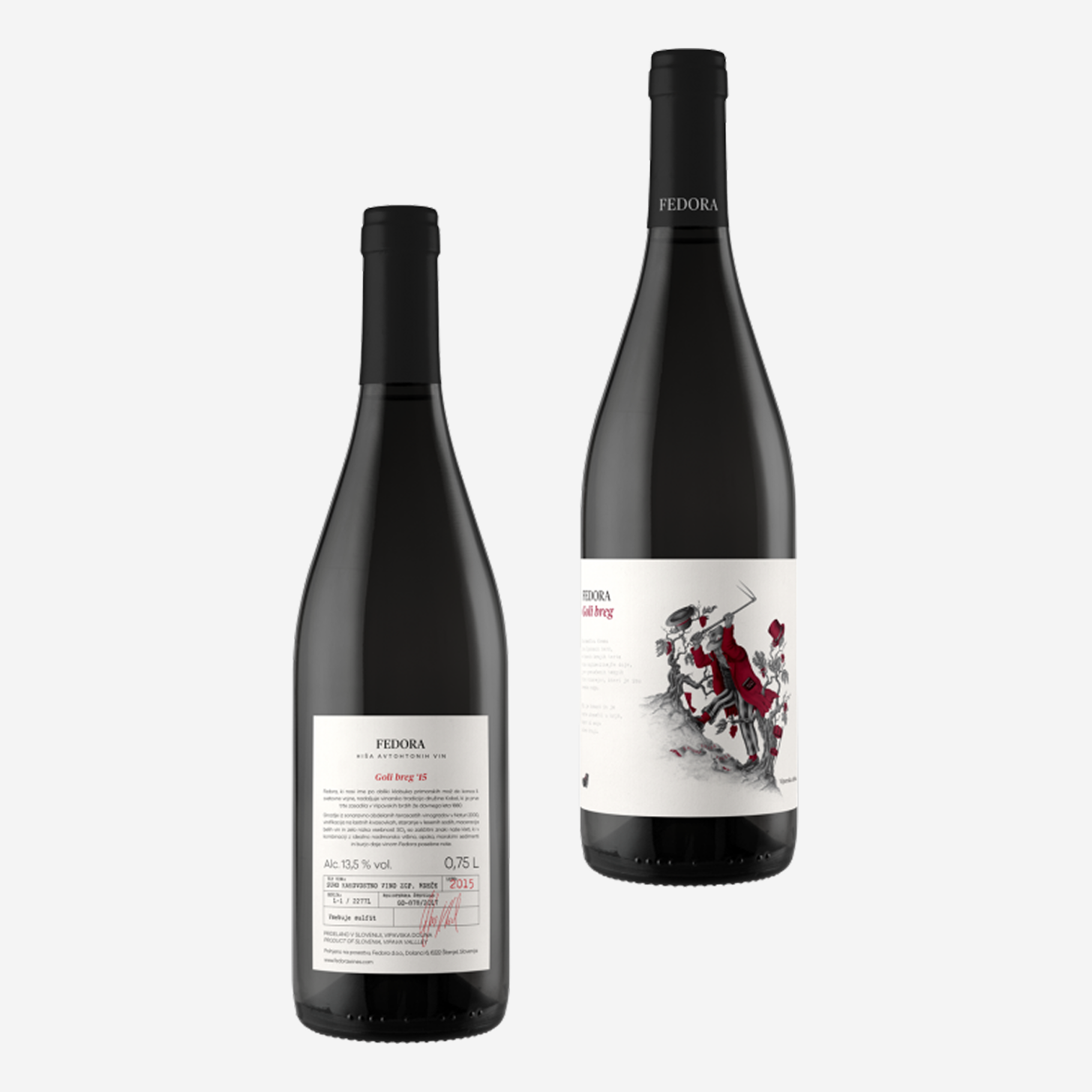 Fedora Goli Breg is a red cuvée composed of 45% Merlot, 30% Cabernet Sauvignon, and 25% Refosco. The Refosco, grown on the hill above our cellar called Goli Breg, adds a distinct fruity character to the blend. The wine displays a deep aubergine hue. It is a lively red wine, brimming with fresh and fruity notes.